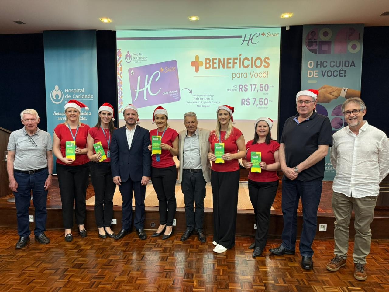 O diretor presidente do Hospital de Caridade de Erechim, Cláudio Rogério Galli, ao lado do superintendente geral do HC, Claudiomiro Carus, e colaboradores da institui [...]